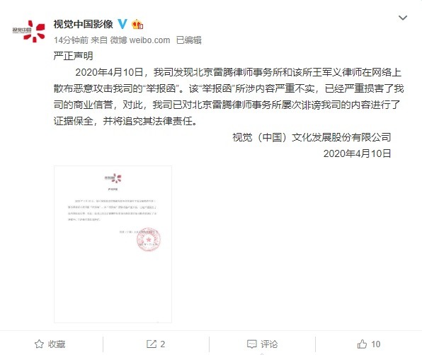 ●4月10日晚,针对雷腾律师事务所发布举报函一事,视觉中国发布声明:该“举报函”所涉内容严沉不实,曾经严沉损害了我司的贸易诺言,对此,我司已对雷腾律师事务所屡次我司的内容进行了保全,并将逃查其法令义务。